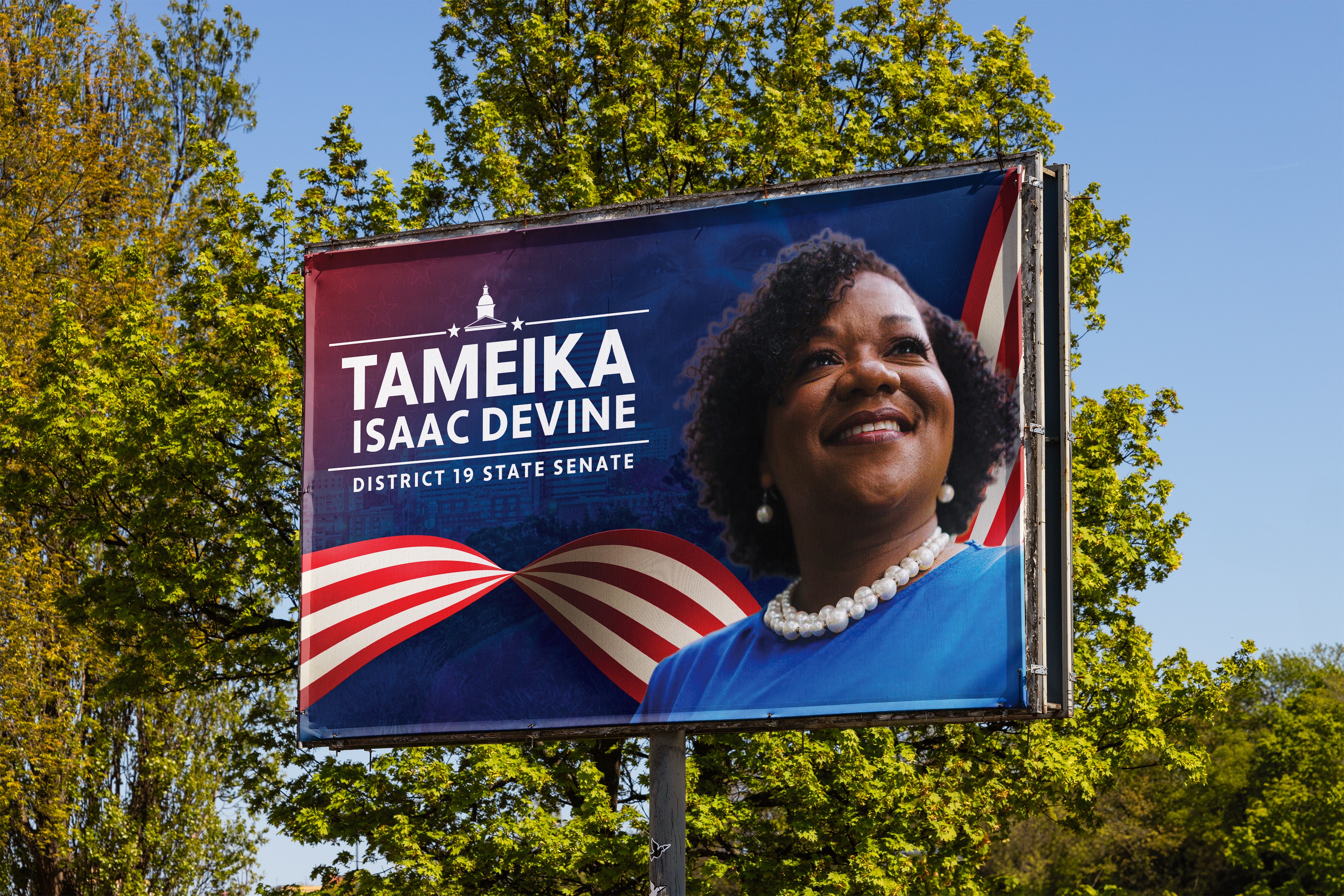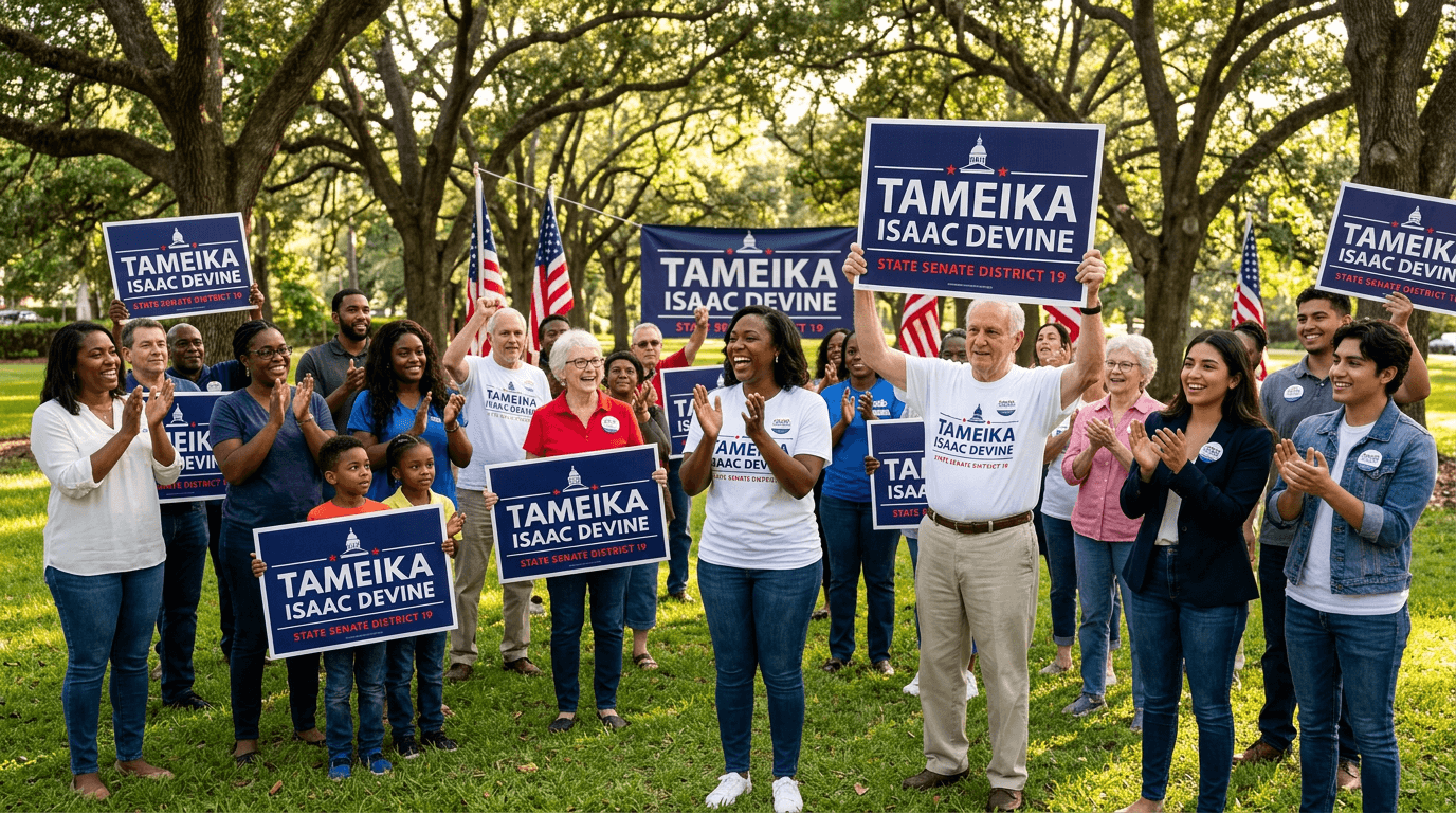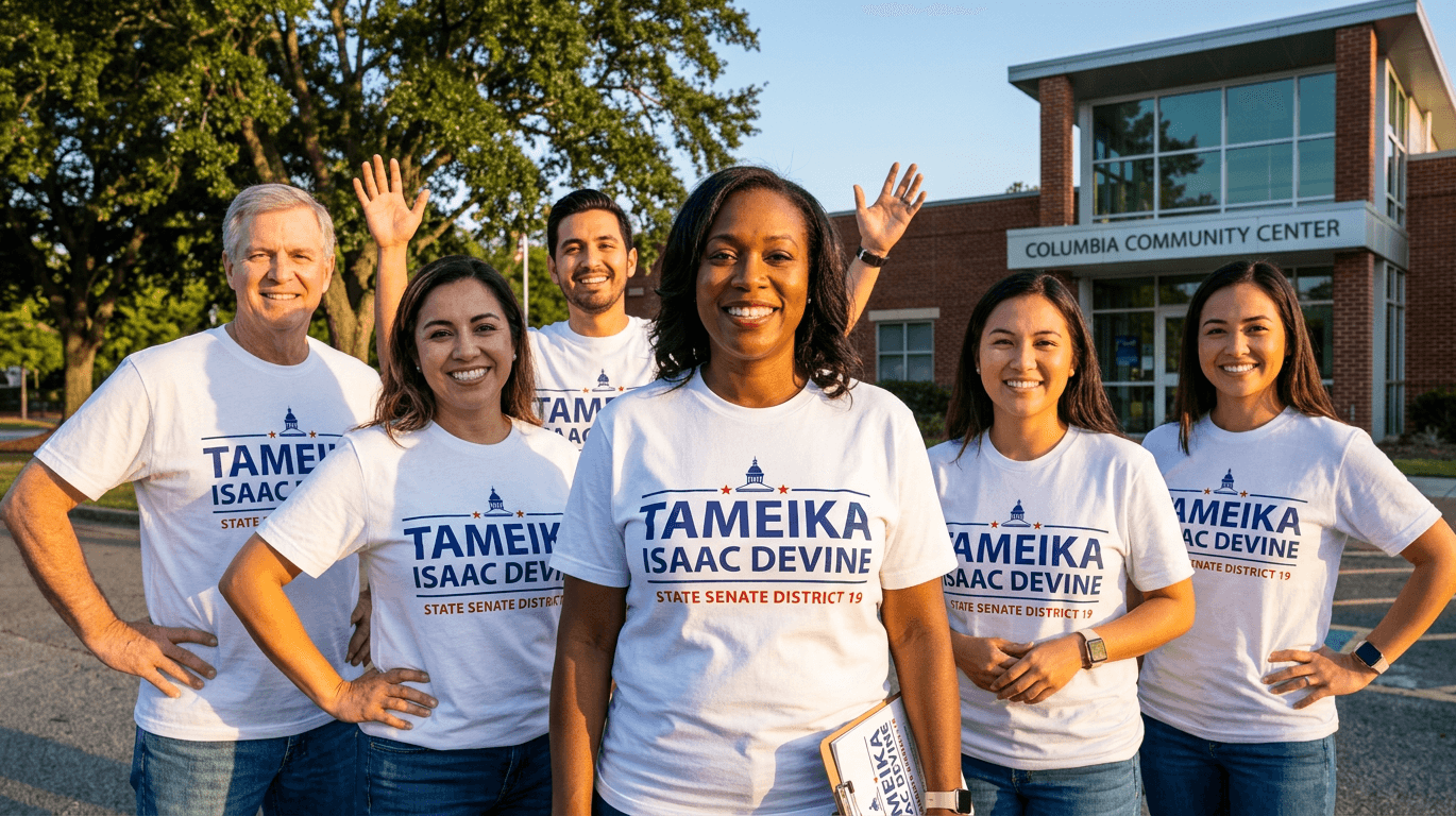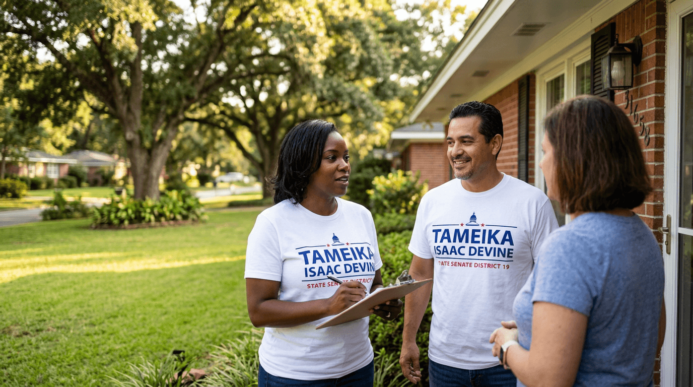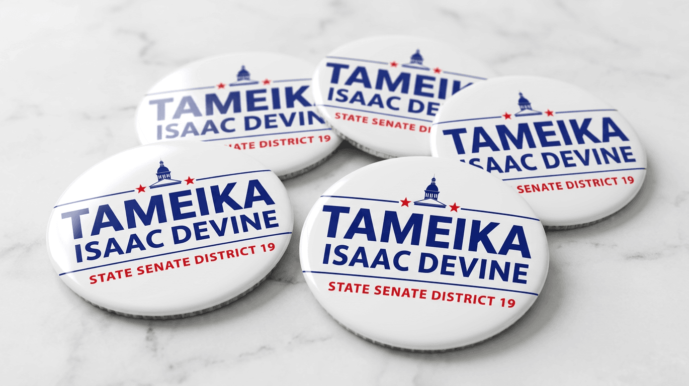 Tameika Isaac Devine won the South Carolina State Senate District 19 special election and was sworn in as one of the first six female state senators in South Carolina history. The Creative Capital brand system delivered a unified, professional campaign presence across every voter touchpoint from the first mailer to the yard signs on Election Day.